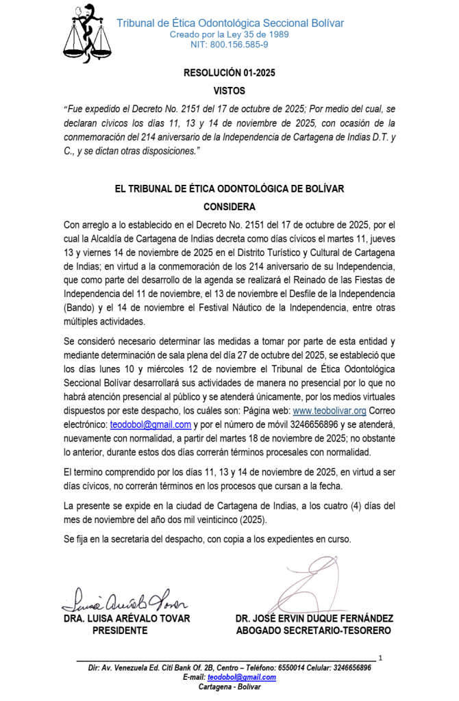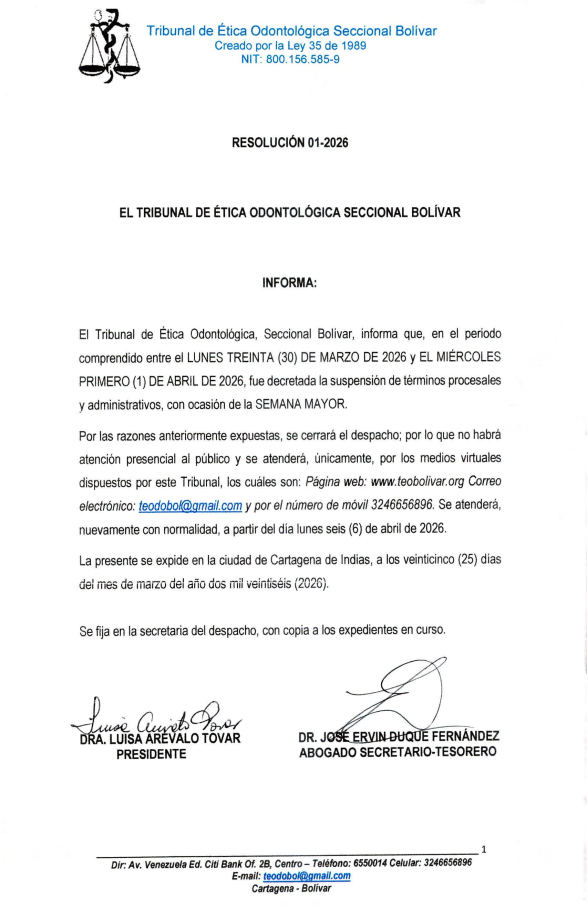 El Tribunal de Ética Odontológica Seccional Bolívar lamenta profundamente el fallecimiento del Dr. Luis Álvarez García.